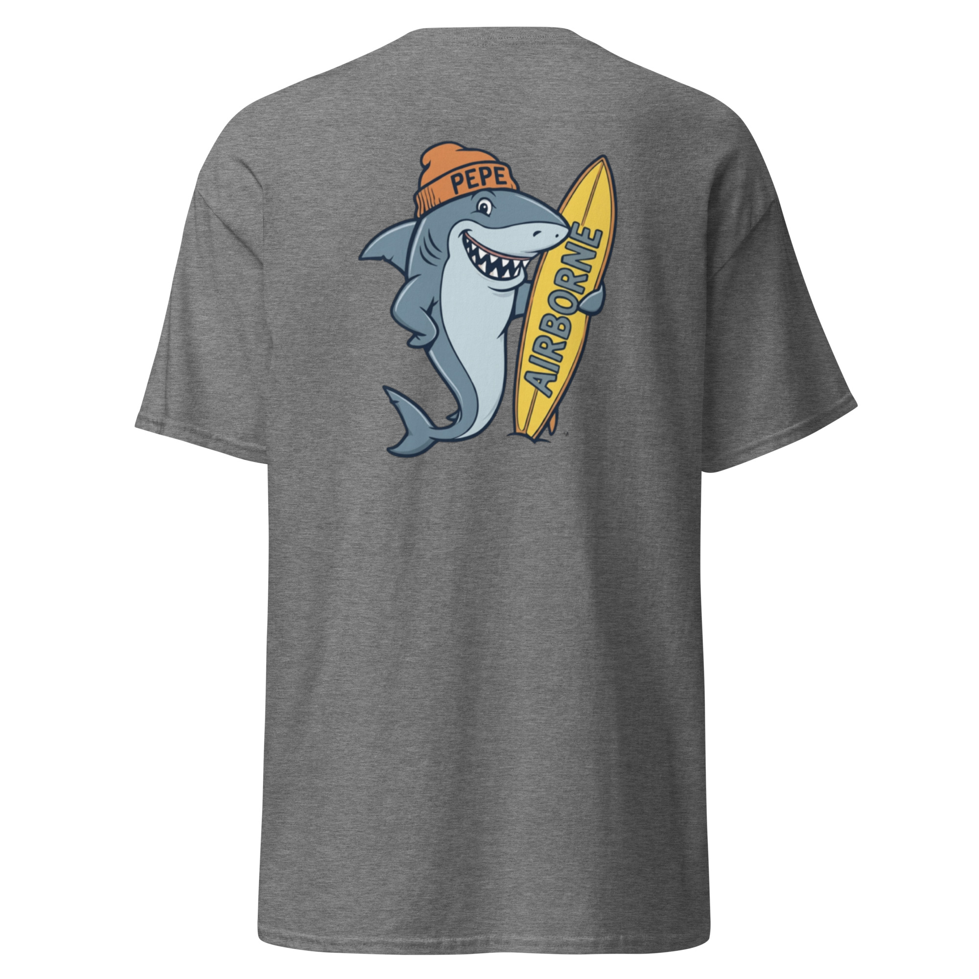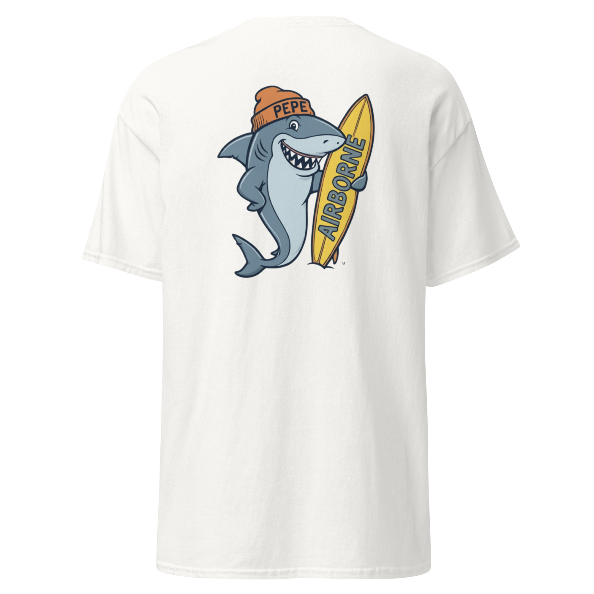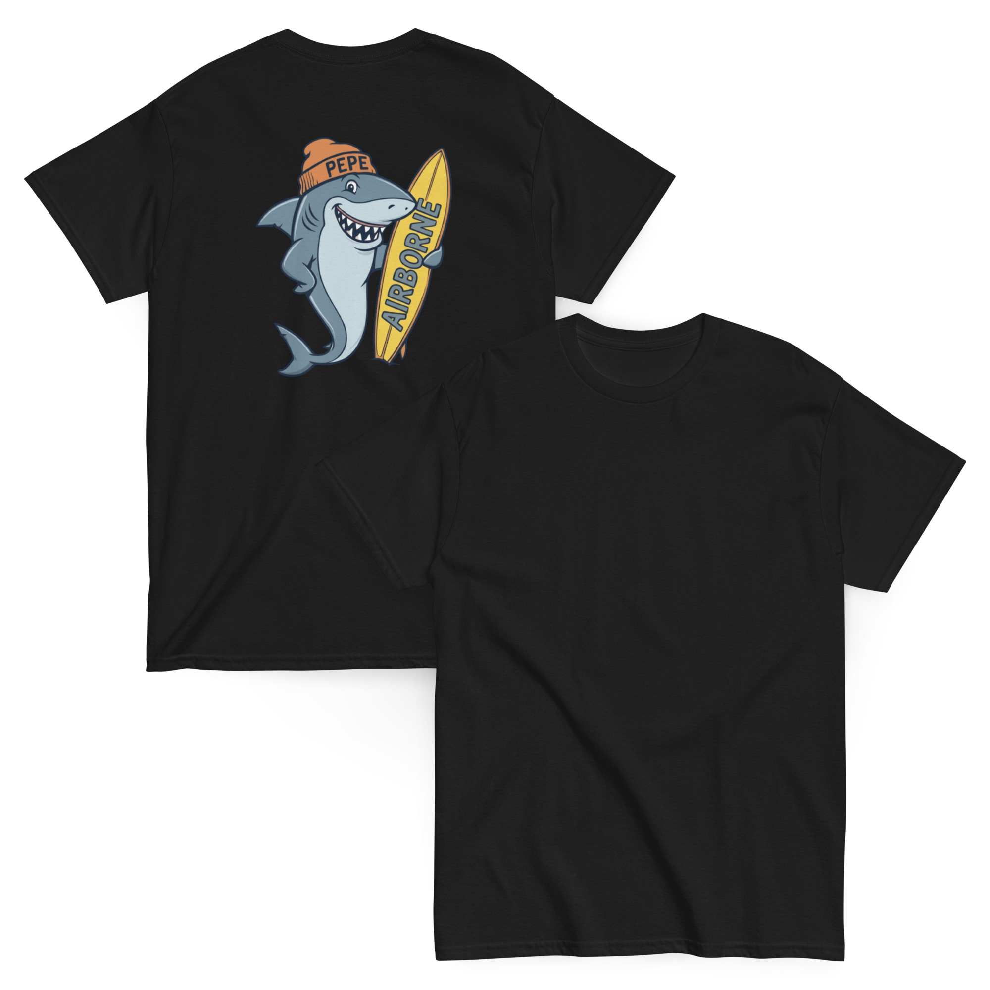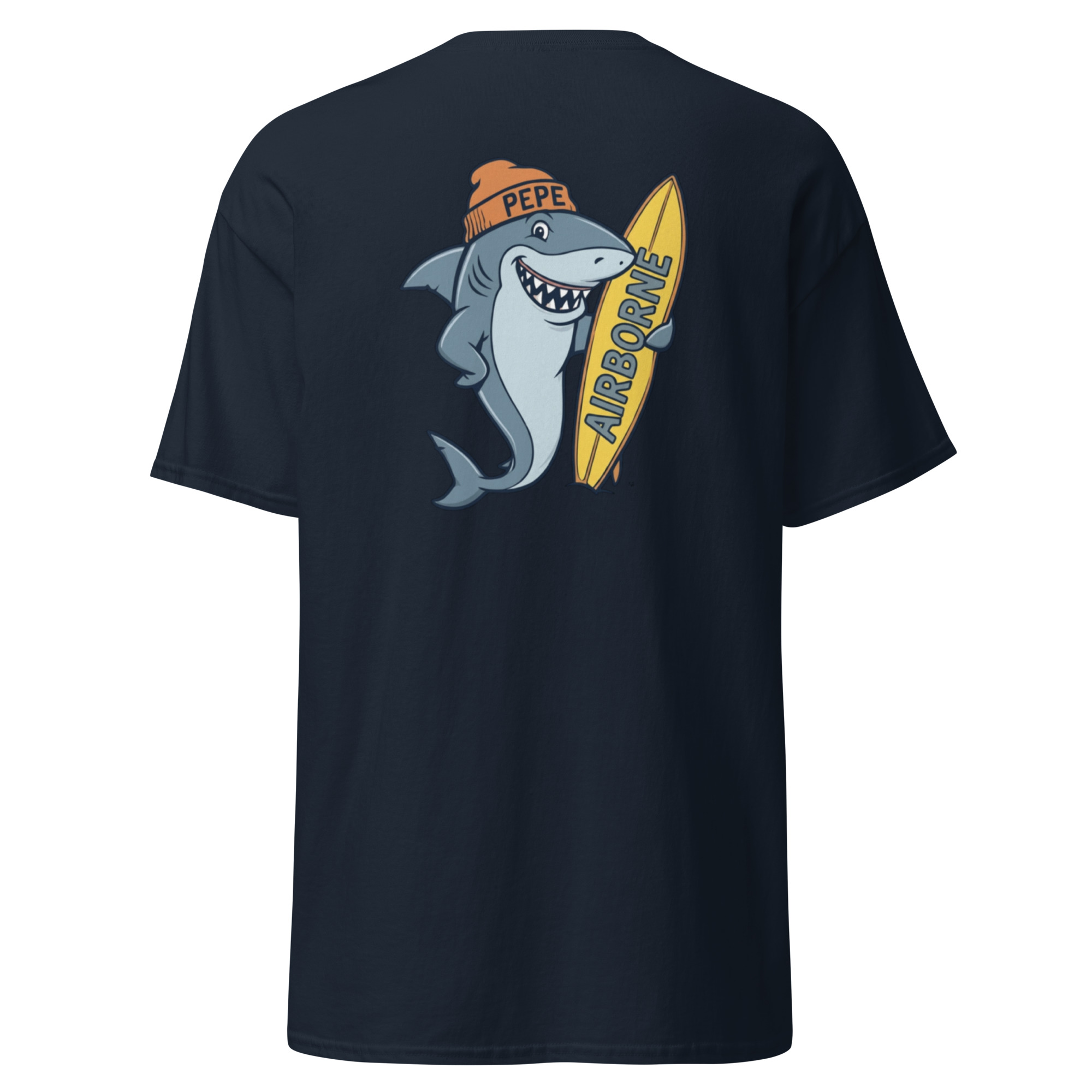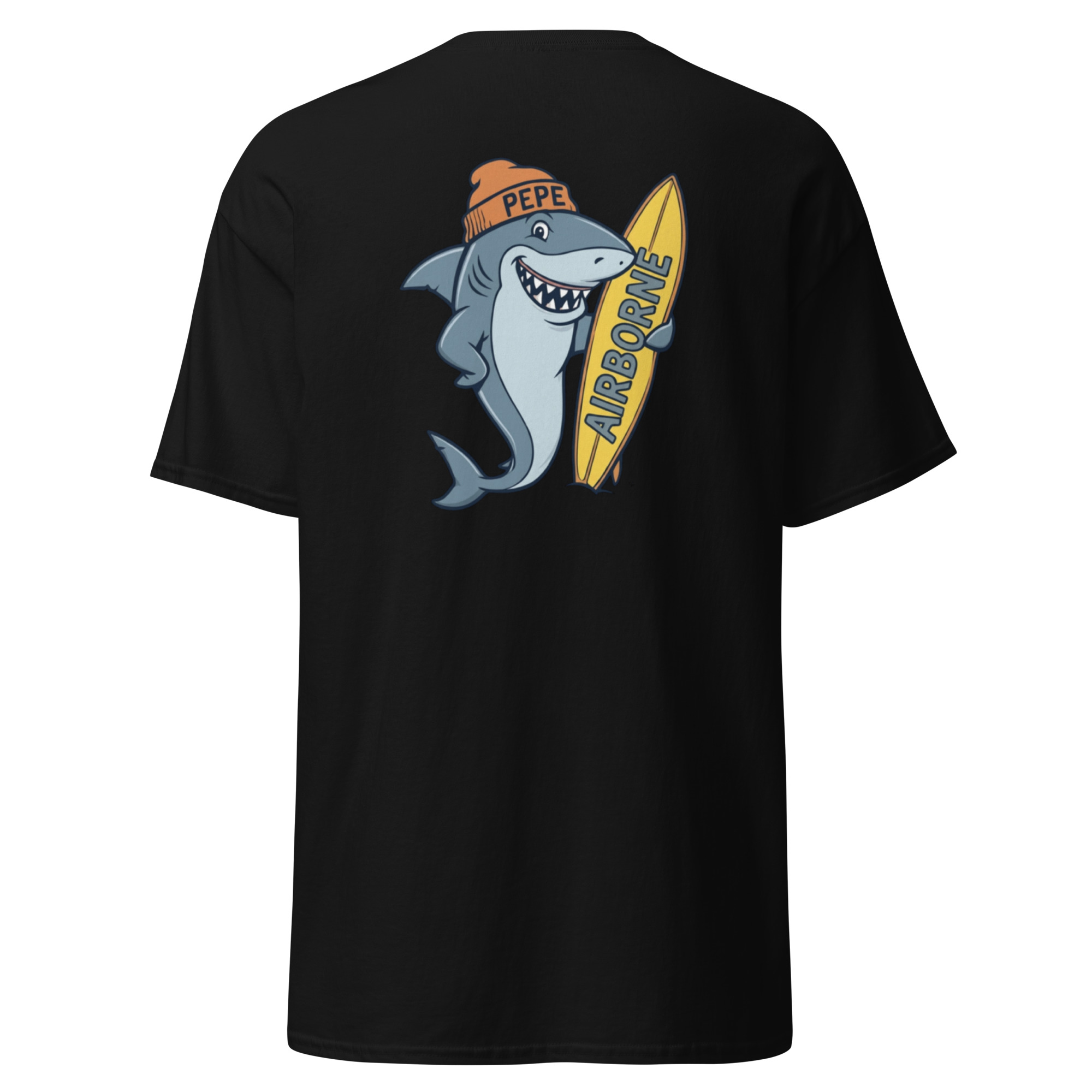 Printed with original-inspired artwork featuring Pepe and the Airborne surfboard graphic, this shirt feels like a lost piece of 90s movie merch in the best way. It is fun, nostalgic, and made for people who know that the best references are the ones not everybody catches right away.